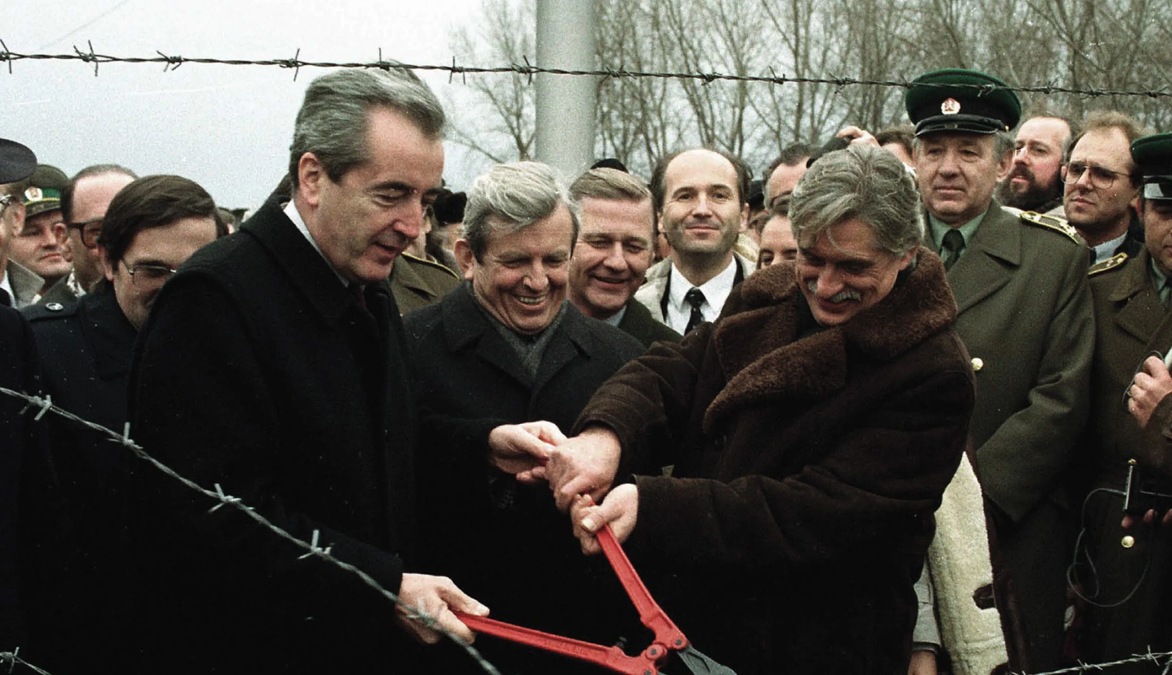 The foreign ministers of Austria and Czechoslovakia Alois Mock and Jirí Dienstbier cut the iron curtain on the border between the villages of Kleinhaugsdorf and Hate on December 17, 1989, after the “velvet revolution” had made it obsolete.